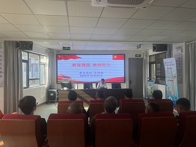 校長王培林以傳達學習習近平總書記在全國教育大會上的重要講話精神為內容上了一堂師德專題黨課。王培林強調,教育強國,教師何為?全體教師要不斷堅定理想信念,陶冶道德情操,堅持涵養扎實學識,勤修仁愛之心,凝聚隊伍合力。做到向榜樣看齊、向先進學習,弘揚光榮傳統,涵養高尚師德,再創學校佳績。