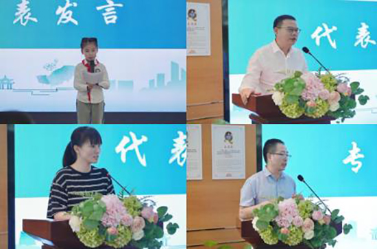 項(xiàng)目介紹結(jié)束后,現(xiàn)場(chǎng)氣氛就到了高潮。趙師紅博士和街道團(tuán)工委書(shū)記吳慧一起為項(xiàng)目啟動(dòng)揭幕,同時(shí)領(lǐng)導(dǎo)們還為在項(xiàng)目中發(fā)揮重要作用的三位“大先生”們頒發(fā)了聘書(shū),以表彰他們?yōu)槲幕瘋鞒兴龀龅呢暙I(xiàn)。學(xué)生代表、校長(zhǎng)及社區(qū)領(lǐng)導(dǎo)相繼發(fā)言,表達(dá)了對(duì)項(xiàng)目的美好祝愿與期待,趙師紅博士對(duì)項(xiàng)目進(jìn)行專(zhuān)業(yè)的引領(lǐng)。
