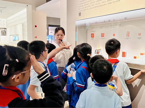 在浙江省非遺文化博物館內,學生們熱情高漲,聽著講解員傳授寶貴知識,同時他們也不吝嗇自己的好奇心,勇于舉手提問,展現出對傳統文化的深厚興趣與探索精神。