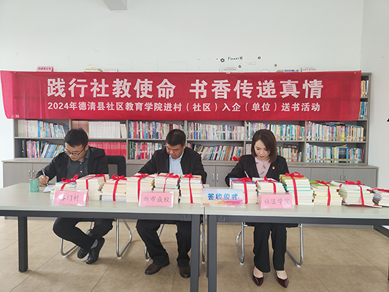 為了拓展德清縣村社區居民閱讀的深度和廣度,引導全社會多讀書、讀好書,著力提高村民思想道德素質和科學文化素質。11月1日上午,德清縣教育局、新市鎮政府、德清縣社區學院、新市成校的領導和老師來到了新市鎮厚皋村和谷門村,開展了“踐行社教使命 書香傳遞真情”贈書活動,同時也為新市成校提供了心理健康方面的書籍。本次活動所贈書籍由德清縣社區教育學院提供。