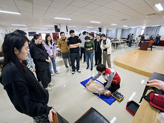 培訓(xùn)采取線上理論和線下實(shí)操相結(jié)合的形式,利用“人人急救”APP平臺(tái)進(jìn)行線上理論教學(xué)和考試,線下設(shè)點(diǎn)開(kāi)展實(shí)操培訓(xùn)與考核。區(qū)紅十字會(huì)授課老師們從基本急救理論知識(shí)、心肺復(fù)蘇技術(shù)(CPR)、體外自動(dòng)除顫儀(AED)操作等方面,結(jié)合生活中發(fā)生的正反面案例,通過(guò)PPT與視頻,圖文并茂地介紹如何應(yīng)對(duì)突發(fā)狀況并及時(shí)開(kāi)展救護(hù)。