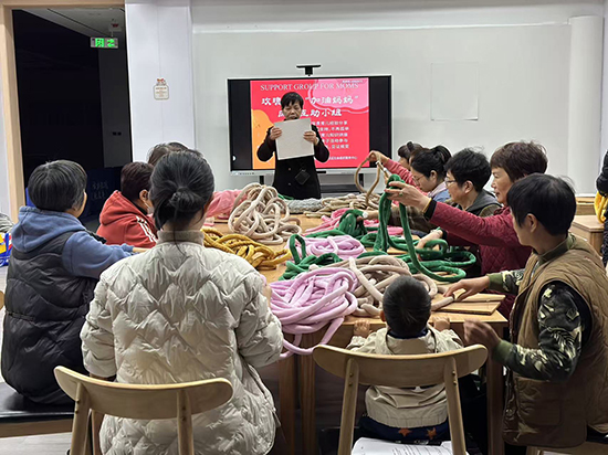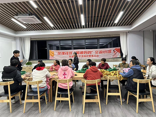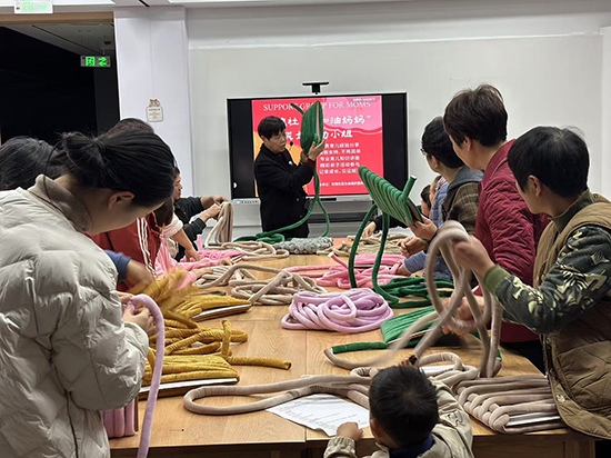 針對親子閱讀空間設(shè)置,寶媽們提出了具體的建議。她們認為,社區(qū)應(yīng)該設(shè)立一個溫馨、舒適的親子閱讀區(qū),提供豐富的兒童讀物和親子共讀活動,營造良好的閱讀氛圍,激發(fā)孩子們的閱讀興趣。社區(qū)還暖心安排了手工編織墊活動。寶媽們在專業(yè)老師的指導(dǎo)下,親手編織出一個個溫暖、舒適的墊子,為冬天送上了一份特別的溫暖。