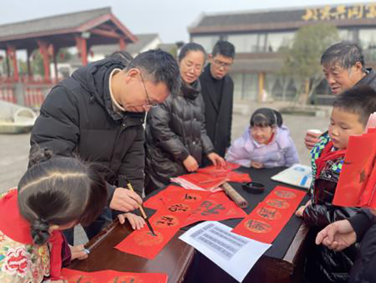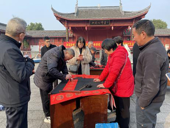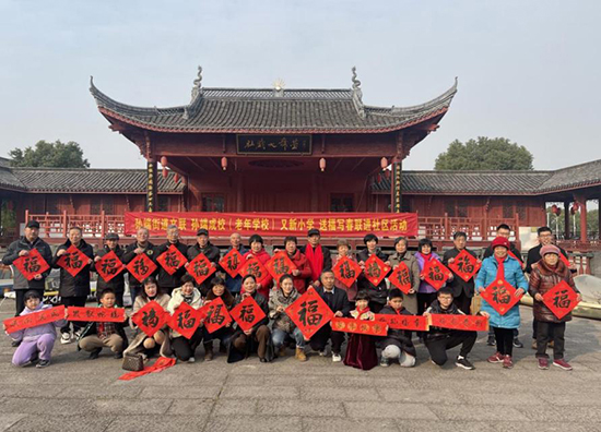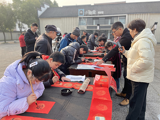 12月26日上午,由孫端街道文學(xué)藝術(shù)聯(lián)合會(huì)、孫端成校(老年學(xué)校)和魯迅外婆家墨趣會(huì)、又新小學(xué)聯(lián)合舉辦“迎新年送福寫春聯(lián)”活動(dòng),第一站走進(jìn)魯迅外婆家安橋頭村,書法愛好者們現(xiàn)場(chǎng)揮毫,“一老一小”攜手,寫福字寫春聯(lián),傳播吉慶喜氣的節(jié)日文化,受到游客和村民的好評(píng)。