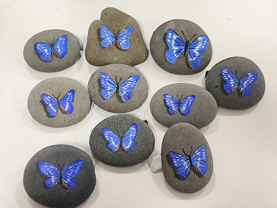 學校特聘安吉縣石畫非遺傳承人施娟云做精品課程的教師。針對老年學習者的認知特點,課程分初級、中級、高級三部分,每一部分都有五個內容,循序漸進,由簡入繁,期間穿插各種題材示范案例,充分凸顯安吉生態特色。共開課40學時,包括去大自然采集石頭、每周集中學習、課后看視頻鞏固并創作。