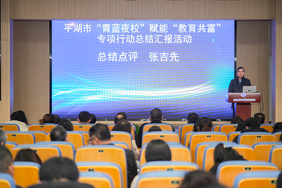1月8日下午,浙江省平湖市“青藍夜校”賦能“教育共富”專項行動總結匯報活動在浙江開放大學平湖學院(平湖社區學院)報告廳拉開序幕。本次活動旨在回顧過去一年的工作成果,展望未來的發展方向,推動新時代“夜校”服務品牌的進一步提升。浙江開放大學黨委委員、副校長、浙江省社區教育指導中心副主任張吉先,嘉興市教育局、嘉興開放大學、平湖市委社會工作部、平湖團市委、平湖市教育局等相關部門分管負責人出席活動。活動由平湖市教育局職教成教科科長李豐主持。