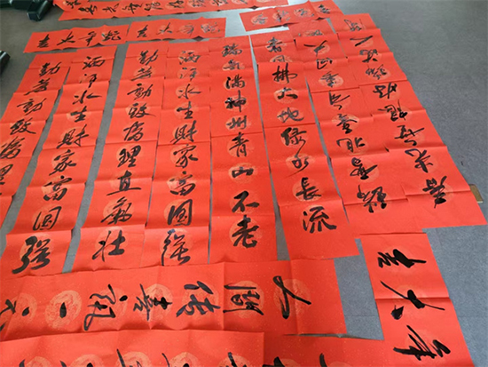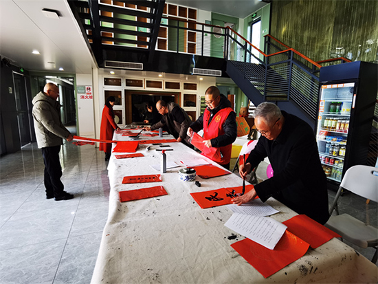 聞訊而來的居民們早早就在現場排起了長隊,眼神中充滿了期待。當一幅幅飽含著祝福的春聯和福字完成時,居民們紛紛圍上前去,挑選自己心儀的作品。有的居民拿到春聯后,迫不及待地展開欣賞,臉上洋溢著幸福的笑容;有的則向老師們請教書法技巧,現場氛圍熱烈而溫馨。