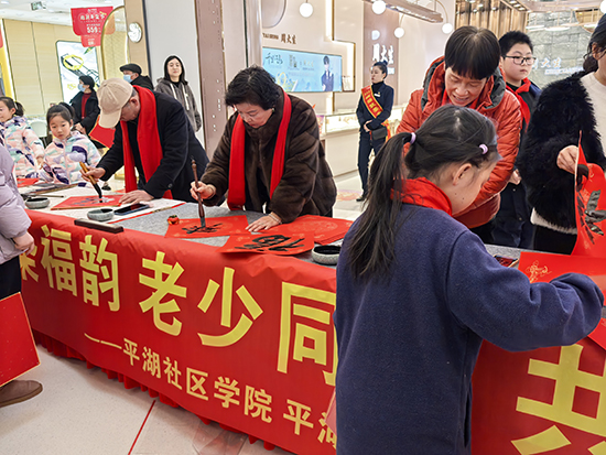 蛇年祥瑞,墨染福韻,老少同慶,共迎新禧。本次“新春送福”活動不僅展示了平湖社區學院學員們的藝術才華,更是推廣和普及傳統文化的重要舉措,為市民們帶來了一場視覺和心靈的文化盛宴,也為即將到來的新春佳節增添了濃厚的喜慶氛圍。(王越)