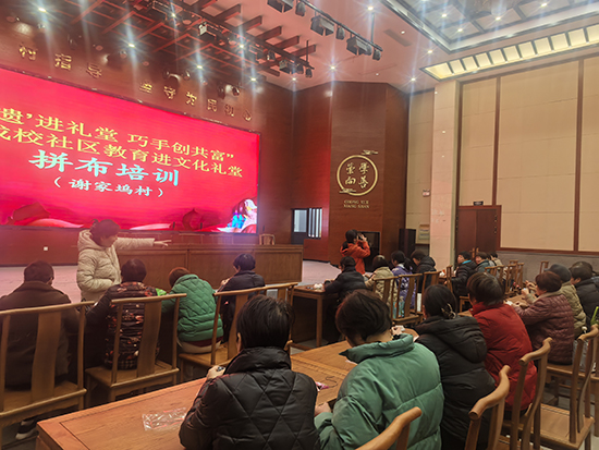 3月4日,蘭亭成人文化技術學校發起的“非遺進禮堂 巧手創共富”社區教育項目在謝家塢村文化禮堂正式啟動。作為拼布系列培訓的首站,該活動吸引了40余位村民參與,標志著這項兼具文化傳承與富民增收的創新實踐在蘭亭街道21個村居全面鋪開。