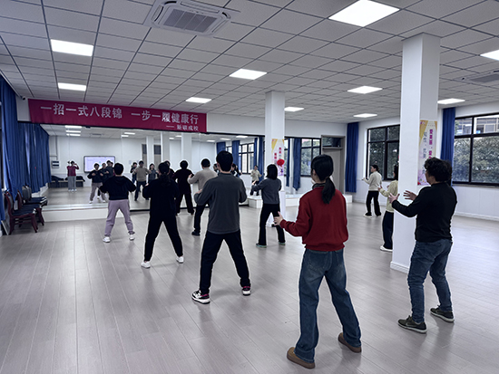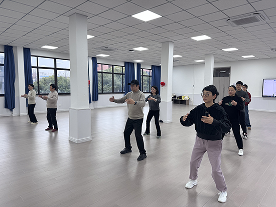 培訓(xùn)中,教練開始八段錦預(yù)備式樁功練習(xí)、兩手托天理三焦、左右開弓似射雕教學(xué),并進(jìn)行逐式拆解動(dòng)作細(xì)節(jié),強(qiáng)調(diào)呼吸與動(dòng)作的協(xié)調(diào)配合。教職工們認(rèn)真學(xué)習(xí)、反復(fù)練習(xí),在舒展筋骨的沉浸式體驗(yàn)中感受傳統(tǒng)養(yǎng)生功法的獨(dú)特魅力。不少教師表示:“一套動(dòng)作下來,肩頸放松了,精神也煥然一新,特別適合久坐伏案的職場人。”
