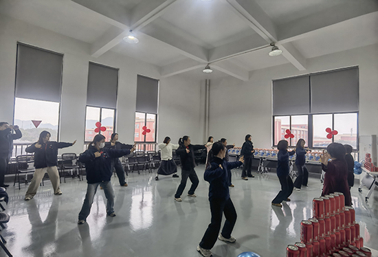 近日,翌波光電科技有限公司的會議室搖身一變成為充滿活力的健身課堂。新碶成校特邀的專業老師從八段錦的基本手型、步型開始講解,一招一式耐心示范。“雙手托天理三焦,左右開弓似射雕。”女職工們全神貫注,跟著老師的口令認真練習,努力掌握每個動作的要領。盡管大家的動作一開始稍顯生疏,但在老師的悉心指導下,逐漸變得流暢起來。