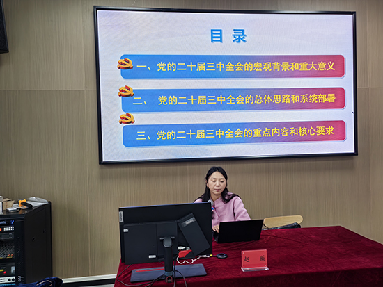 北侖區(qū)委黨校趙老師圍繞黨的二十屆三中全會精神進行了深入解讀,她詳細闡述了全會提出的新思想、新論斷、新要求,引導入黨積極分子深刻領會全會精神,把握改革方向,增強改革自覺。