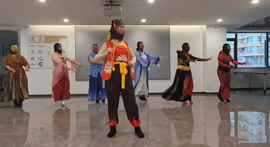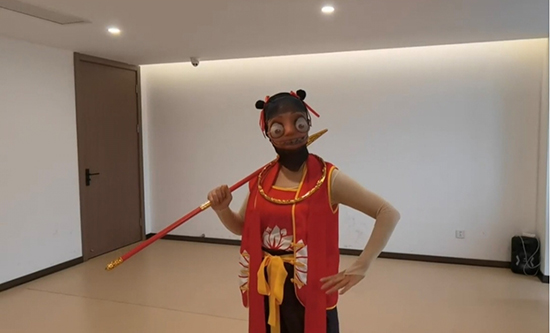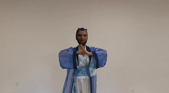 緊接著,阿姨們充分發揮自己的舞蹈才藝,來了一段情景舞蹈表演。在天雷滾滾的配樂聲中,阿姨們時而簇擁著哪吒齊舞,時而由敖丙、太乙真人和哪吒來個互動,時而配合哪吒獨舞,“哪吒”丁阿姨居中舞動火尖槍,旋轉、踢腿,動作剛勁有力,將哪吒面對強敵時的無畏與果敢展現得淋漓盡致。整個COSPLAY秀演阿姨們活力四射,將電影中的動作元素和現代流行舞蹈風格融合在一起,跳出獨特魅力。