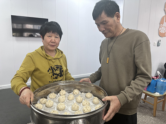 “之前在家經(jīng)常包湯圓,但做肉包子還是第一次,沒想到還挺成功的。”當(dāng)熱氣騰騰的肉包新鮮出爐,來自桃源里的葉阿姨開心地說道。