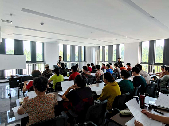課堂上,丁老師耐心細(xì)致,從基礎(chǔ)的發(fā)聲技巧講起,手把手指導(dǎo)學(xué)員們調(diào)整氣息、把握節(jié)奏。學(xué)員們熱情高漲,認(rèn)真跟隨老師的講解反復(fù)練習(xí),即便有些學(xué)員此前毫無音樂基礎(chǔ),也在輕松愉快的氛圍中逐漸找到感覺。現(xiàn)場年齡最大的學(xué)員已 78 歲,雖頭發(fā)花白,但眼神中滿是對音樂的熱愛與學(xué)習(xí)的專注,全程緊跟課堂節(jié)奏,不愿錯(cuò)過任何一個(gè)知識(shí)點(diǎn)。?