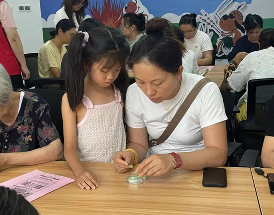 現場氣氛熱烈,歡聲笑語不斷。大家互相交流制作心得,分享配色靈感,一顆顆精致的珠子在指尖流轉,漸漸串成了一條條美麗的手鏈。有的居民為家人制作了寓意平安的幸運手串,有的為自己設計了時尚個性的搭配,每一件作品都蘊含著制作者的巧思與情感。學員們感嘆:“平時很少有機會做手工,今天不僅學會了新技能,還認識了新朋友,真的很開心!”“社區經常組織這樣有意義的活動,讓我們的生活更加豐富多彩,希望以后還能參加更多類似的活動。”