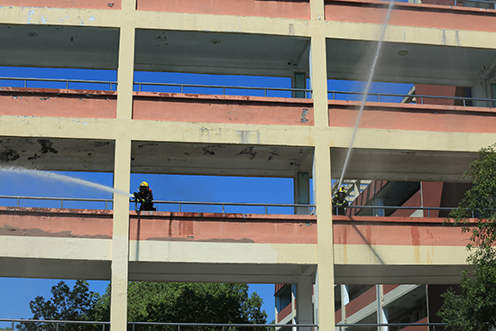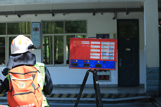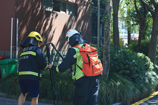 廣場上,消防隊員們還展示了消防作業車及登高救援設備,這些平時難得一見的“消防利器”吸引了眾多師生的目光。消防隊員們一邊進行現場講解,一邊熟練地操作設備進行演示。他們詳細介紹了消防作業車的功能和使用方法,以及登高救援設備在高層建筑救援中的重要作用。通過這種現場講解與演示,同學們對消防救援裝備有了更直觀、更深入的認識,仿佛打開了一扇通往消防世界的大門。這不僅增強了消防安全知識的實踐性,也讓同學們深刻感受到了消防工作的艱辛和偉大。