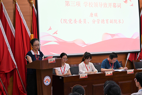 院黨委委員、分管副院長唐瑛致開幕詞,唐瑛副院長向與會人員表示熱烈的歡迎和衷心的感謝,對臨平學院青年們的努力付出表示肯定,希望新一屆委員會成員能夠以飽滿的政治熱情、認真負責的工作態(tài)度,不辜負廣大團員青年的重托,砥礪前行,并預祝大會圓滿成功。
