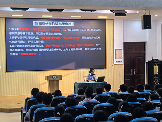 隨后,費警官詳細介紹了當前高發的詐騙類型,包括網絡貸款詐騙、兼職刷單類詐騙、網絡消費類詐騙、冒充身份類詐騙以及游戲類詐騙等。她結合近期發生的典型案例,揭示了詐騙分子的慣用伎倆和心理戰術,讓同學們對詐騙的隱蔽性和危害性有了更直觀的認識。