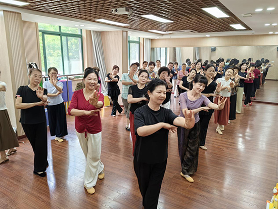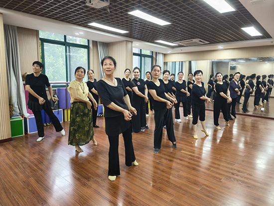 9月15日上午9:00還未到,舞蹈室內(nèi)已經(jīng)聚滿(mǎn)了舞蹈初級(jí)班的學(xué)員。不少人提前換好舞蹈鞋,在鏡子前認(rèn)真練習(xí)動(dòng)作。“假期一結(jié)束就盼著開(kāi)學(xué),和老姐妹一起跳舞心情特別好!”73歲的學(xué)員金阿姨笑著說(shuō)。授課老師吳宇萍細(xì)致帶領(lǐng)大家進(jìn)行基礎(chǔ)熱身,學(xué)員們神情專(zhuān)注,跟隨著節(jié)拍反復(fù)練習(xí),教室里洋溢著活力與歡笑。