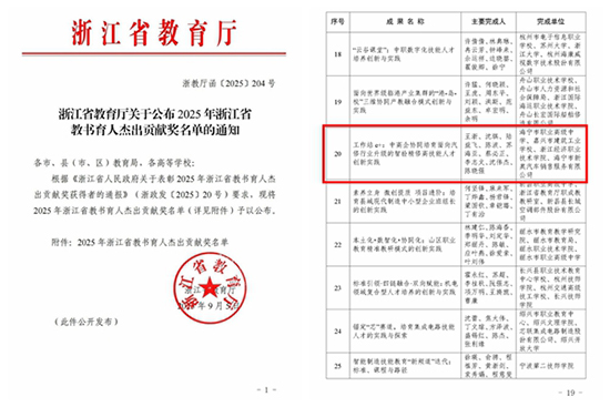 9月5日,浙江省教育廳公布了《關(guān)于公布2025年浙江省教書育人杰出貢獻獎名單的通知》(浙教廳函[2025]204號),由海寧市職業(yè)高級中學(xué)牽頭,聯(lián)合嘉興市建筑工業(yè)學(xué)校、浙江經(jīng)濟職業(yè)技術(shù)學(xué)院、海寧市新奧汽車銷售服務(wù)有限公司共同完成的成果《工作站e+:中高企協(xié)同培育面向汽修行業(yè)升級的智檢精修高技能人才創(chuàng)新實踐》獲得浙江省中等職業(yè)教育教學(xué)成果獎二等獎。