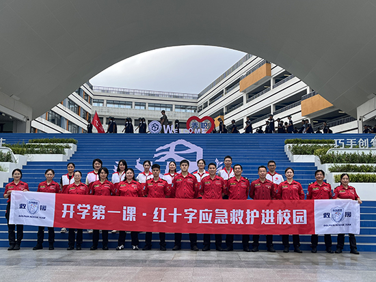 軍訓期間,同學們系統進行了隊列、內務、國防知識等內容的訓練和學習,錘煉了意志,增強了國防意識和規則意識。除此之外,活動還邀請臨平區海豚救援隊來校,為同學們進行專業的應急救護教育,講解演示心肺復蘇和如何正確使用AED等救護技能,提升同學們安全意識和應急救護能力。