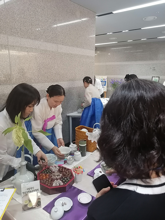 吳震老師自詡“茶的傳譯者”,訪問韓國時,先在首爾拜會了與妙西有著不解之緣的韓國《茶的世界》崔錫煥社長,特意準備了載有《陸羽在浙江》專文的《陸羽茶文化研究》學刊及其副主編的《茶樹栽培與茶園管護》教材、“愛奇葩·陸小羽”茶文創(chuàng)布藝產品、妙西霞幕茶和湖筆等,分贈韓國的友好人士,并在“韓中日茶學術研討會”PPT茶圖文演示收官環(huán)節(jié),重點宣傳、推介了杼山、妙西鎮(zhèn)、西塞山旅游度假區(qū)和“東亞文化之都——茶生活品質之城”江南湖州。(曹炫芬、郎正凱)