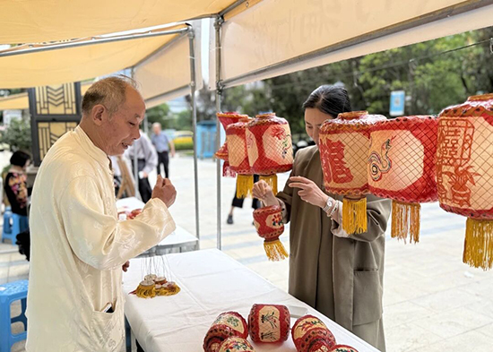 活動伊始,“西陵雅集”非遺集市便人頭攢動,成為最聚人氣的區域之一。非遺展架上,精巧的核雕、質樸的竹編燈籠、絢麗的剪紙、流光溢彩的巖彩琺瑯……十余項特色非遺作品齊齊亮相,無聲地述說著匠心傳承的故事。