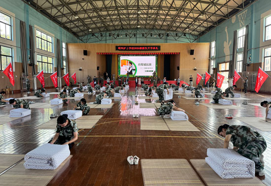 為豐富紹興護士學校新生軍訓期間文化生活,提升學生執(zhí)行力、內(nèi)務整理水平,引領學生樹立正確勞動觀,近日,紹興護士學校在體藝館舉行了2025級新生疊被子比賽。