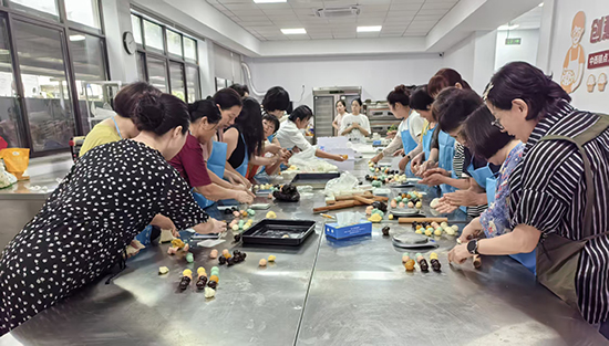 安全有保障,文化添溫情。安全宣講結(jié)束后,新碶街道社教中心百合分中心聯(lián)動(dòng)新碶成校,共同舉辦桃花酥手工制作活動(dòng)。活動(dòng)現(xiàn)場(chǎng),百合社區(qū)文化加油站志愿者們手把手指導(dǎo)職工、居民們?nèi)嗝妗W、塑形,大家在揉制酥皮、點(diǎn)綴花紋的過程中交流互動(dòng),既體驗(yàn)了傳統(tǒng)手工的樂趣,又增進(jìn)了鄰里與職工間的感情。面團(tuán)的香氣與歡聲笑語(yǔ)交織,不僅營(yíng)造了濃厚的節(jié)日氛圍,更以文化活動(dòng)為紐帶,提升了轄區(qū)居民與職工的歸屬感和精神凝聚力。