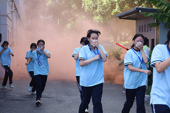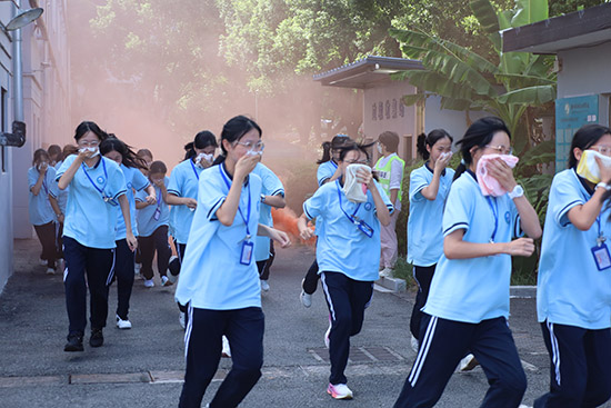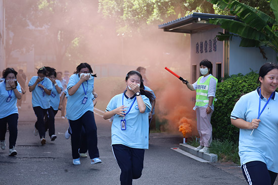 隨著模擬火災(zāi)警報(bào)聲響起,演練正式開始。高一新生在教官與班主任的指引下,迅速用濕毛巾捂住口鼻,沿著預(yù)設(shè)逃生路線快速向操場(chǎng)指定安全區(qū)域疏散。整個(gè)過程中,同學(xué)們反應(yīng)迅速、秩序井然,未出現(xiàn)擁擠、推搡現(xiàn)象,到場(chǎng)后各班迅速清點(diǎn)人數(shù)并向校安辦匯報(bào),疏散率達(dá) 100%,演練整體達(dá)到預(yù)期效果。?