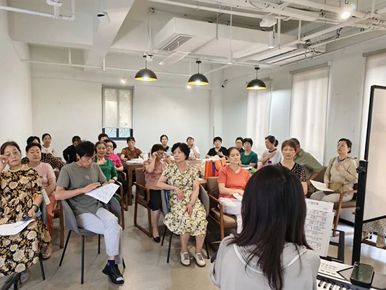 流行樂演唱課堂上,老師介紹了本期課程的教學(xué)理念與內(nèi)容安排。隨后的第一節(jié)課從基礎(chǔ)發(fā)聲練習(xí)入手,逐步過渡到歌曲學(xué)唱。學(xué)員們認(rèn)真跟練、積極互動,在優(yōu)美的旋律和真摯的情感交流中,初步領(lǐng)略了聲樂藝術(shù)的魅力。