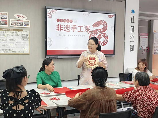 非遺剪紙課堂上,授課老師首先為學(xué)員們介紹了剪紙藝術(shù)的起源和流派等知識,讓大家對中國的傳統(tǒng)文化有更深層次的了解。隨后向大家展示了幾幅精美的剪紙作品,最后進(jìn)行手把手教學(xué)。大家都很認(rèn)真地學(xué)習(xí),不一會兒,一幅幅精美的剪紙作品呈現(xiàn)在眼前。