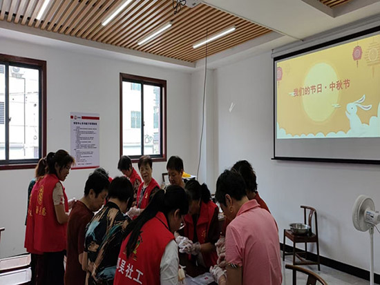 活動當天,老年學校的活動室內歡聲笑語,其樂融融。學校提前為老人們備好了冰皮粉、豆沙、蓮蓉等多種餡料以及專業的月餅制作工具。在面點師傅的耐心指導下,老人們興致勃勃地動手實踐,從和面、包餡到壓模成型,每一個步驟都做得認真細致。大家互相交流著制作技巧,分享著生活中的趣事,看著一個個晶瑩剔透、造型精美的冰皮月餅在自己手中誕生,老人們的臉上都洋溢著自豪與喜悅的笑容。活動現場彌漫著香甜的味道,更充滿了溫馨和諧的氣氛。