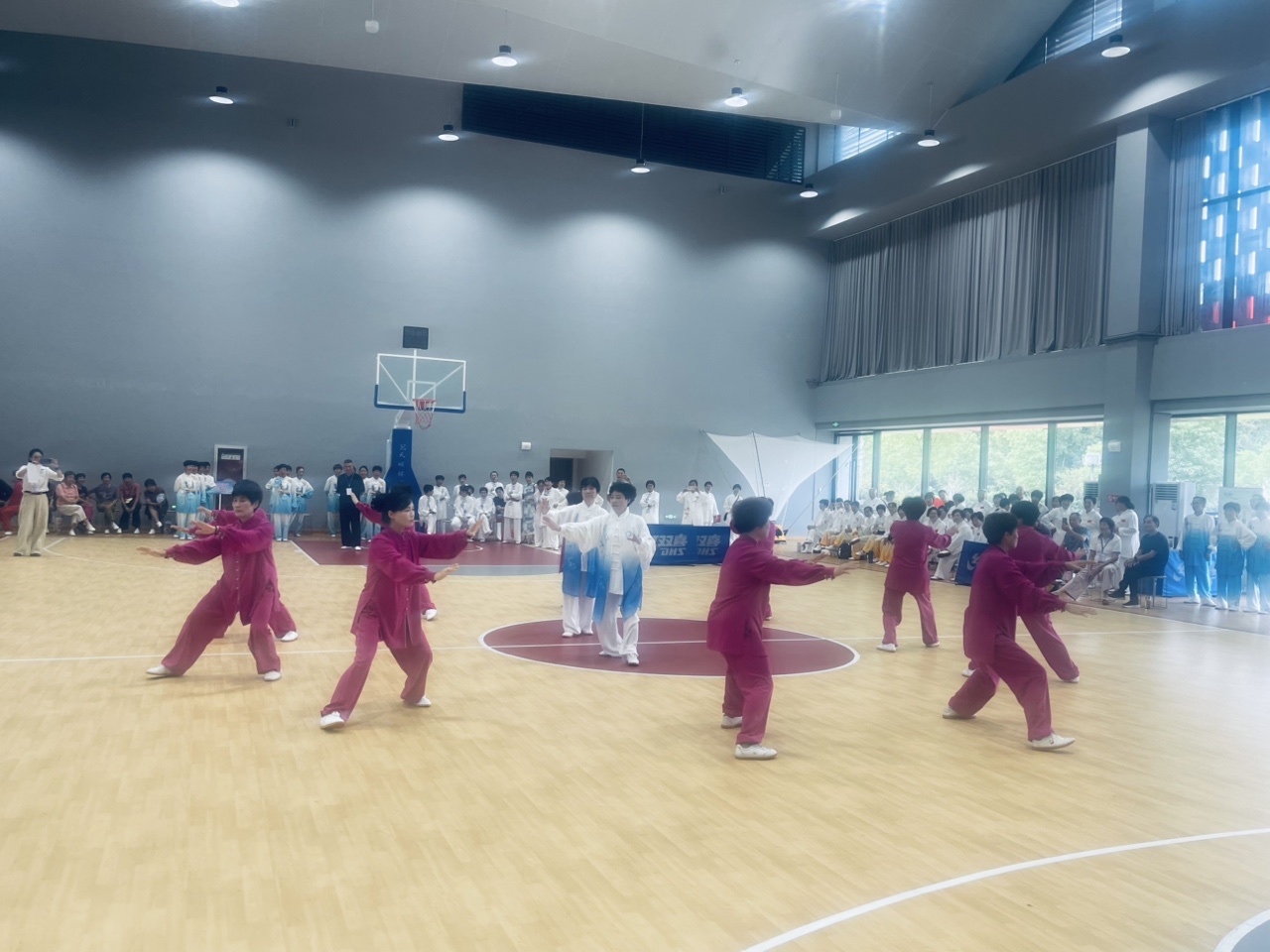 開幕式上,16支隊伍共250余名隊員集體展示八式太極拳,宏大的場面、恢宏的氣勢瞬間點燃現場氣氛,引得觀眾紛紛拿起手機拍照記錄。隨后,各隊伍依次登場,隊員們身著各色太極拳服,在悠揚典雅的音樂伴奏下舒展身姿,動作剛柔相濟、行云流水,將太極的韻味與魅力展現得淋漓盡致。其中,諸暨市基地隊表現尤為亮眼,隊員們嫻熟的動作、從容的姿態以及靈活變換的陣型,贏得現場觀眾陣陣掌聲。