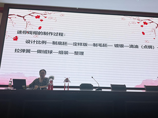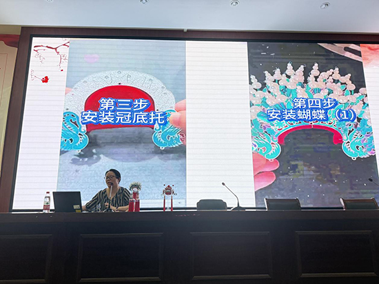 講座的核心亮點(diǎn),在于李大師對(duì) “迷你鳳冠” 這一創(chuàng)新文創(chuàng)產(chǎn)品的深度分享。她向大家生動(dòng)展示了如何將舞臺(tái)上那些龐大、華麗、屬于帝王將相和后宮佳麗的鳳冠,通過精巧的設(shè)計(jì)與精湛的技藝,微縮成一件件精美絕倫、可置于案頭欣賞的文創(chuàng)珍品。從最初設(shè)計(jì)靈感的汲取,到材料的精心挑選,再到鑲嵌等數(shù)十道復(fù)雜工序的簡化與創(chuàng)新,李大師娓娓道來。她不僅展示了成品之美,更生動(dòng)詮釋了非遺技藝如何在堅(jiān)守核心精髓的同時(shí),通過創(chuàng)造性轉(zhuǎn)化和創(chuàng)新性發(fā)展,巧妙融入現(xiàn)代審美與生活,使其煥發(fā)出嶄新的生命力。