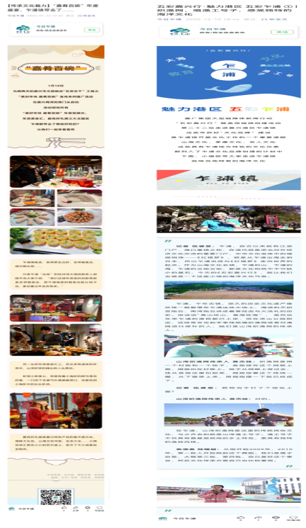 9.報道頗多:山灣非物質文化遺產在今日乍浦的微信上擁有眾多的報道,如:“五彩嘉興行 魅力港區 五彩乍浦”——織漁網,唱漁工號子,感受獨特的海洋文化,山灣織漁網表演參加平湖市非遺傳承成果展演,走進校園“漁業文化 鄉土情懷”大講堂活動,遇見“山海情緣”專場文旅夜市點亮城市夜經濟,“漁”你“童”享,蝦味無窮”做蝦餅活動等等共20余篇報道。