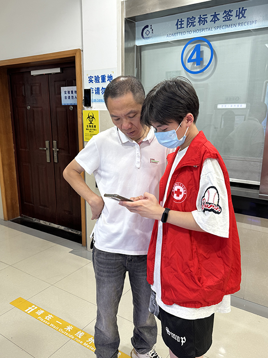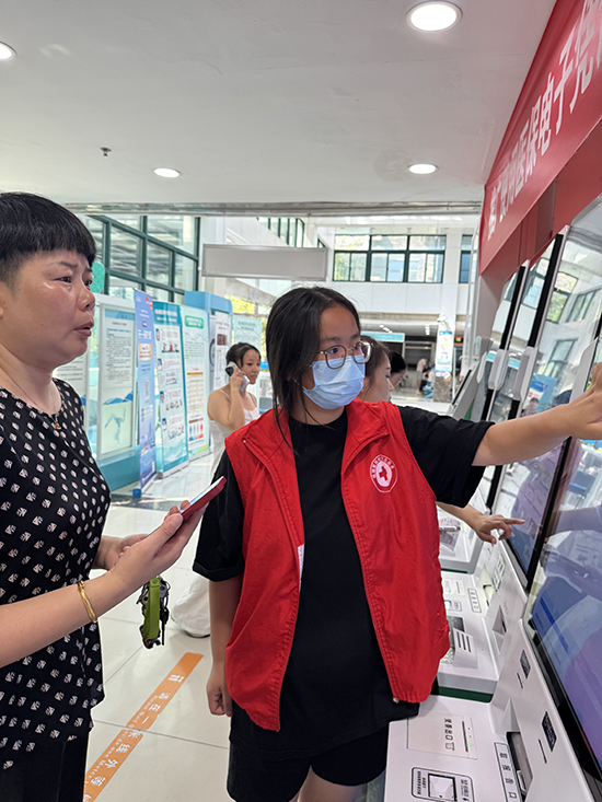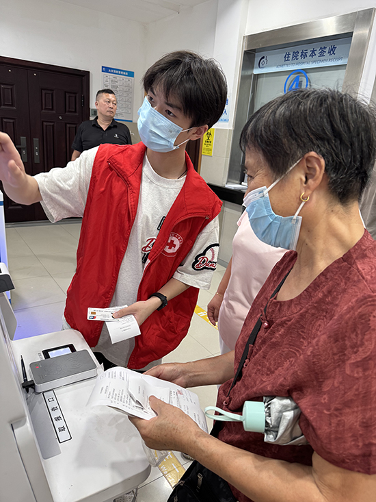 國慶假期期間,學生志愿者們每天提前30分鐘到崗,換上醫院統一準備的志愿馬甲,迅速進入工作狀態。在門診導診臺,他們耐心為前來就診的患者及家屬解答疑問,協助老年患者操作自助掛號機、打印檢查報告,指引就診路線,有效緩解了導診護士的工作壓力,用親切的態度讓患者感受到節日的溫暖。