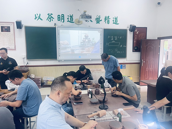 9月28日,培訓進入實地研學環節。上午,學員們走進水口鄉成人文化技術學校,實地踏看“紫筍茶藝”“紫砂工藝”特色展示區,直觀感受該校品牌建設成果。隨后,水口鄉成校趙珍校長以《立足鄉域特色 打造成教品牌 助力地方發展——淺談紫筍茶文化體驗品牌建設》為題作報告,分享該校依托地方特色培育成教品牌的實踐經驗,讓學員深刻體會到“一校一品”建設的匠心與巧思。現場,學員們還分組參與手捏紫砂杯、宋代點茶體驗活動,在動手實踐中感受傳統文化與職業教育融合的獨特魅力。