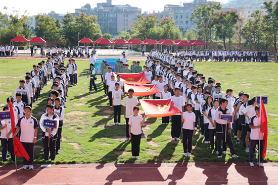 在莊嚴肅穆的升旗儀式中,全場肅立。五星紅旗在護旗手的護衛(wèi)下緩緩入場,伴隨著雄壯的《義勇軍進行曲》冉冉升起,國歌聲聲,激蕩著每個人的愛國情懷與體育精神。