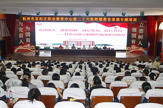 為深入學習貫徹習近平總書記關于人工智能與教育發展的重要指示精神,全面落實立德樹人根本任務,8月22日至23日,富陽區職業教育中心隆重舉行第二十六輪師德教育暑期專題培訓暨2025學年第一學期開學工作會議。本次培訓組織全體教職工開展集中學習與專題研討,進一步統一思想、凝聚共識,為新學期各項工作高質量開展奠定堅實的思想基礎和隊伍保障。