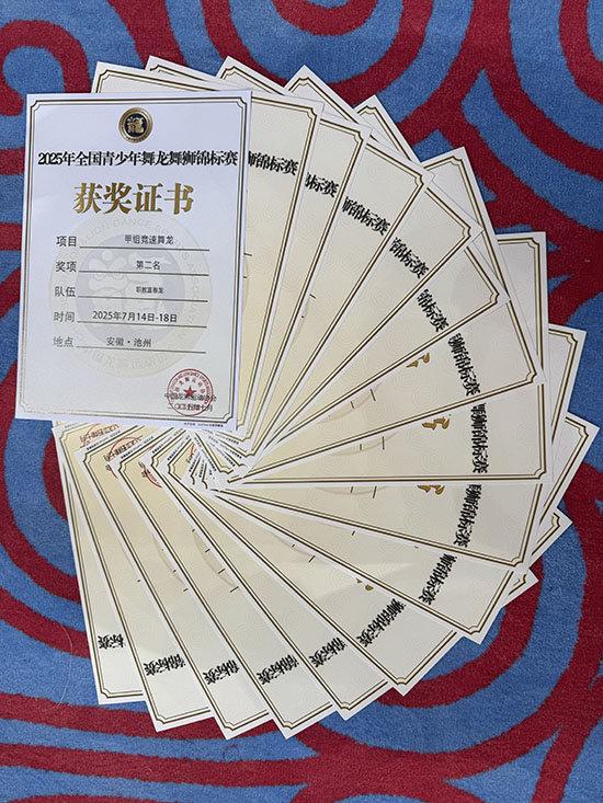 比賽中,職教富春龍的隊員們齊心協力,將巨龍演繹得栩栩如生。他們的動作行云流水,或穿騰、或翻滾、或游弋,把龍的霸氣威武展現得淋漓盡致。經過激烈角逐,隊員們憑借出色的發揮,最終榮獲甲組舞龍團體二等獎;獲競速舞龍第二名;獲規定套路第三名;獲自選套路第四名。這不僅是對他們個人努力的肯定,更是對學校舞龍項目教學成果的一次檢驗。
