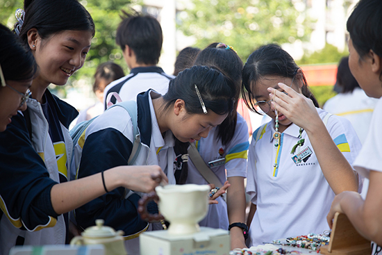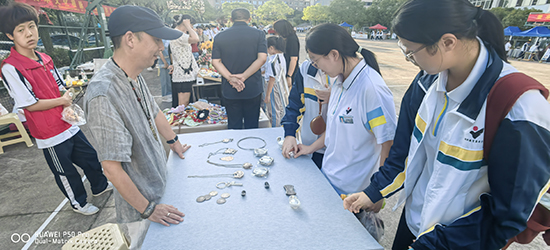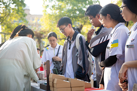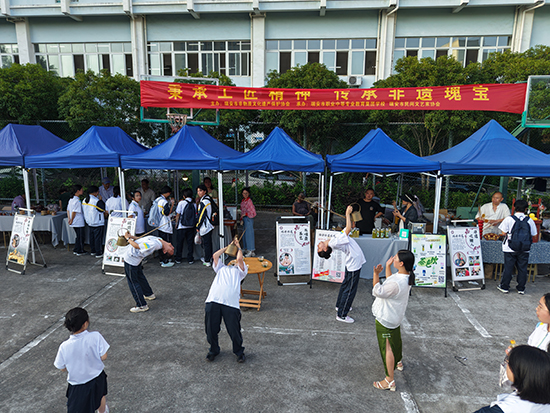 “叮鈴鈴——”,10月10日下午3時,瑞安市職業中等專業教育集團學校(以下簡稱瑞職集團校)的放學鈴聲剛落,原本安靜的校園小廣場瞬間熱鬧起來。同學們快步匯聚于此,目光被廣場兩側琳瑯滿目的攤位吸引——一場兼具觀賞性與互動性的“民間工藝盛宴”暨非遺文化進校園活動正拉開帷幕,用指尖上的技藝為師生們帶來沉浸式文化體驗。