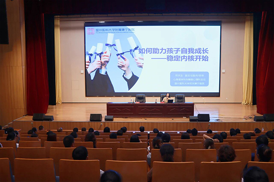 為全面推進(jìn)心理健康體系建設(shè),加強(qiáng)未成年人心理健康教育,借“世界精神衛(wèi)生日”宣傳活動契機(jī),10月11日,玉環(huán)市中等職業(yè)技術(shù)學(xué)校、玉環(huán)市綜合高中特邀浙江省健康科普專家?guī)煨睦斫】悼破諏<摇⒄憬√厣珜W(xué)科(行為醫(yī)學(xué))后備學(xué)科帶頭人、溫州醫(yī)科大學(xué)附屬康寧醫(yī)院睡眠心理科&心身醫(yī)學(xué)科主任鄭天生副主任醫(yī)師,在校大報(bào)告廳為200余位家長開展題為《如何助力孩子自我成長——從穩(wěn)定內(nèi)核開始》的家庭主題教育講座?;顒佑蓪W(xué)校德育分管校長金松主持。
