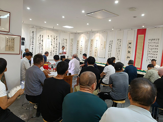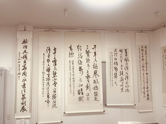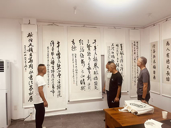 開幕式簡短而莊重,由楓江書畫社社長魏仁虎主持并致辭。他回顧了書畫社精心打造的“五一展、國慶展、年終迎春展”三大展事,著重強(qiáng)調(diào)“以展促創(chuàng)、以展促學(xué)”的核心理念,指出這一理念持續(xù)激發(fā)著社員的創(chuàng)作活力與熱情。魏仁虎表示,此次展覽既是楓江書畫社推動本土藝術(shù)傳承與創(chuàng)新的成果縮影,更離不開三位藝術(shù)家的踐行與引領(lǐng),稱其為“內(nèi)容豐富、異彩紛呈的藝術(shù)盛宴”。同時,他還對2026年迎春書畫展及五一聯(lián)展的籌備工作提出具體要求。開幕式后,駱恒天分享了個人創(chuàng)作感悟與對書藝的執(zhí)著追求,三位藝術(shù)家更現(xiàn)場導(dǎo)覽展品、切磋交流,進(jìn)一步提升了現(xiàn)場的藝術(shù)鑒賞氛圍。