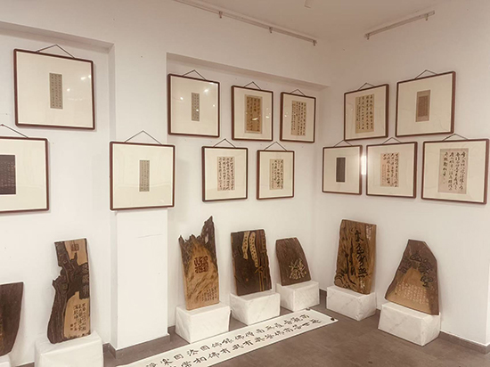 周永在篆刻與雕刻領(lǐng)域天賦突出,作品刀法爽利、構(gòu)思新穎,更巧妙將書法筆意融入竹木雕刻,形成獨(dú)樹一幟的藝術(shù)語言,為傳統(tǒng)技藝注入時代活力。此次展出的書法、印屏及雕刻作品,均讓人耳目一新。