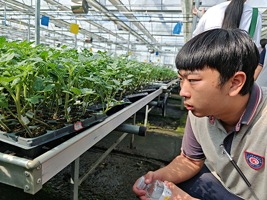 在農(nóng)創(chuàng)村相關負責人帶領下,同學們首站走進謝徑安傳化植物科學中心,化身“未來農(nóng)夫”,系統(tǒng)了解生物育種、智能播種、數(shù)字種苗等現(xiàn)代農(nóng)業(yè)技術。從實驗室科研攻關到種苗工廠產(chǎn)業(yè)化應用,同學們深刻感受到科技對農(nóng)業(yè)生產(chǎn)的革新力量。24園林班的楊旭斌說:“這里的工作環(huán)境非常好,我將加倍努力,爭取以后來這里實習、工作。”
