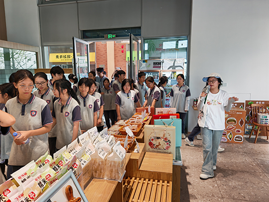 隨后,同學們參觀了集公共服務、文化交流與鄉(xiāng)村創(chuàng)業(yè)于一體的傳化農(nóng)創(chuàng)中心,調(diào)研了鄉(xiāng)村特色產(chǎn)業(yè)發(fā)展路徑。通過探訪精釀啤酒加工工坊、鄉(xiāng)村生態(tài)藝術植物染工坊、蝴蝶工坊自然課堂等農(nóng)創(chuàng)企業(yè),了解大米、菜籽油、梨膏等優(yōu)秀農(nóng)產(chǎn)品及植物精靈、植物盲盒等創(chuàng)新產(chǎn)品,同學們對農(nóng)創(chuàng)村“產(chǎn)業(yè)融合、品牌打造、服務惠民”的鄉(xiāng)村振興模式有了直觀認知。