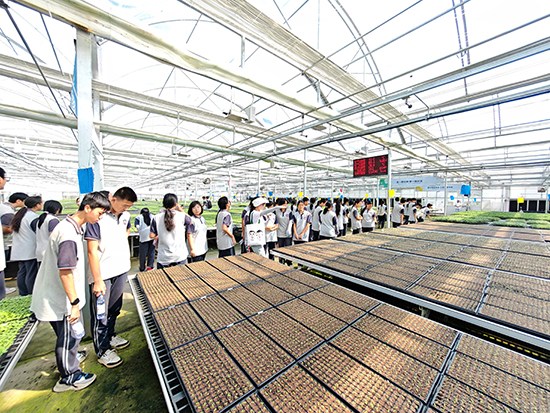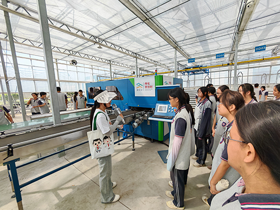 參觀好后,同學們分組進行補苗、搬運黑塑板、除草等勞動實踐活動,體驗企業(yè)生產(chǎn)流程。