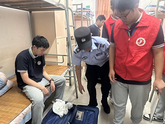 城東派出所由楊金龍警官帶隊,27名干警參與此次活動。在學(xué)生干部的協(xié)助下,由相關(guān)班主任帶隊,干警們對學(xué)生寢室進行了認真檢查,特別是對于衣柜、皮箱等容易藏匿物品的地方進行了逐個檢查。