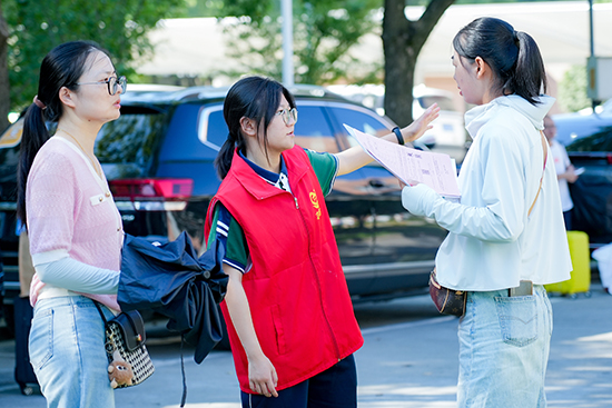 早上7時(shí),伴著徐徐秋風(fēng),后勤準(zhǔn)備組、校內(nèi)引導(dǎo)組、安保組等8個(gè)新生接待工作組按時(shí)上崗,到處都是忙碌的身影。“你們好,車子請(qǐng)按指示牌右轉(zhuǎn)就可到達(dá)西區(qū)報(bào)到點(diǎn)。”在工作人員的指引下,家長(zhǎng)車輛有序停放在學(xué)校專門設(shè)定的停車區(qū)域或校園外道路兩旁,暢通無(wú)阻,從入校的第一刻起,新生和家長(zhǎng)們便感受到來(lái)自學(xué)校的溫暖與關(guān)懷。